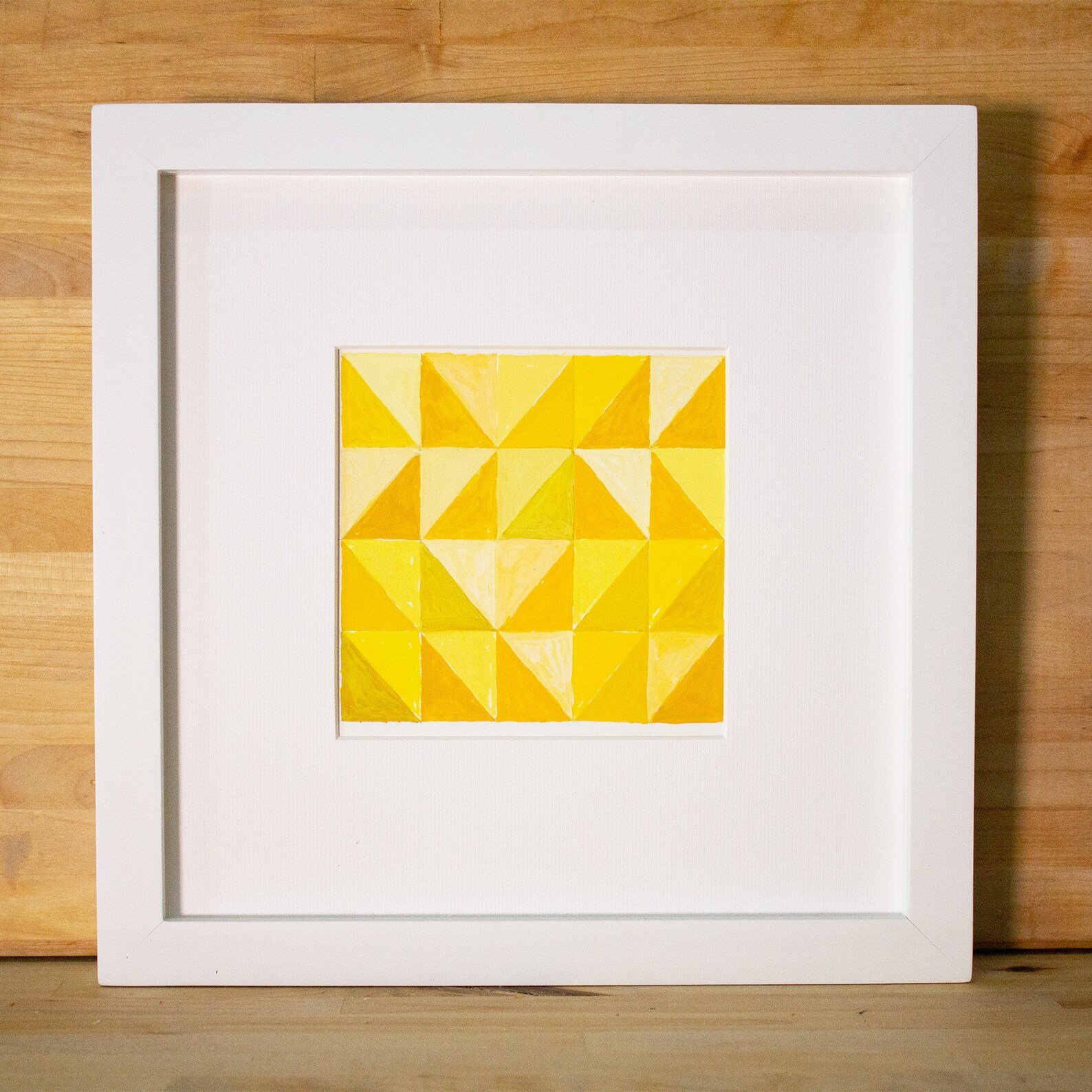 Yellow is the color of light and happiness. At first, this body of work was called "Stained," in reference to stained glass but I changed it recently to "Shattered," like how when light meets stained glass, it twinkles and sparkles. This body of work radiates like a small sun.